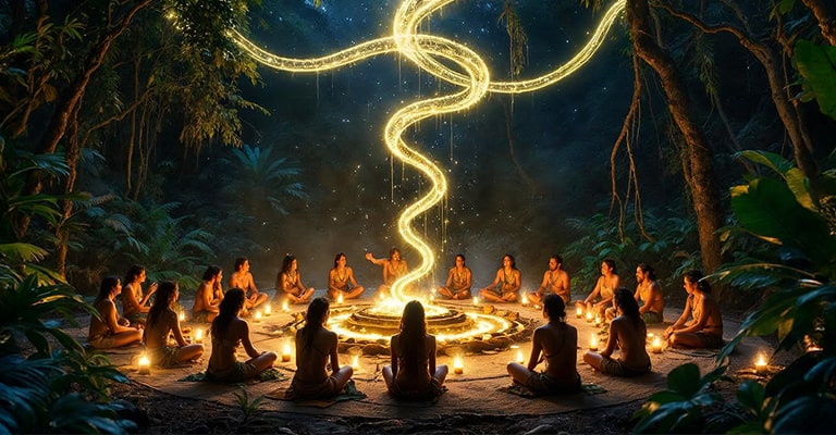 In the esoteric dimension of an Ayahuasca ceremony, the “current” refers not merely to the flow of energy within the space but to the intelligent, living stream of spiritual force that arises when intention, prayer, and sacrament align. This curr